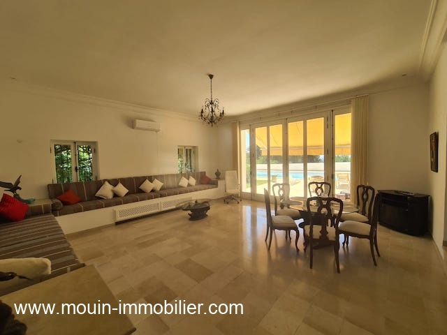 A louer à l’année une belle demeure située sur les hauteurs de la Zone Craxi à Hammamet, à 2mn d’auto route Tunis Hammamet et 10mn du centre-ville.