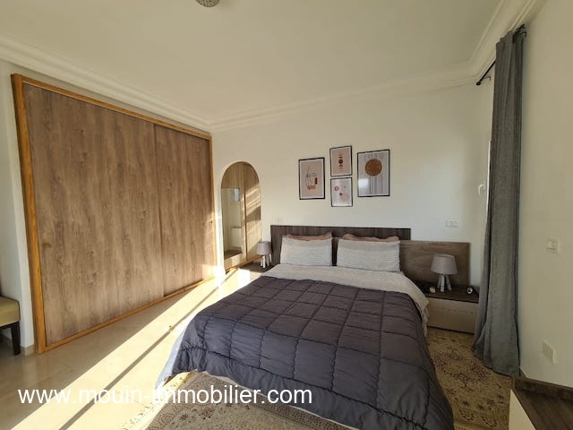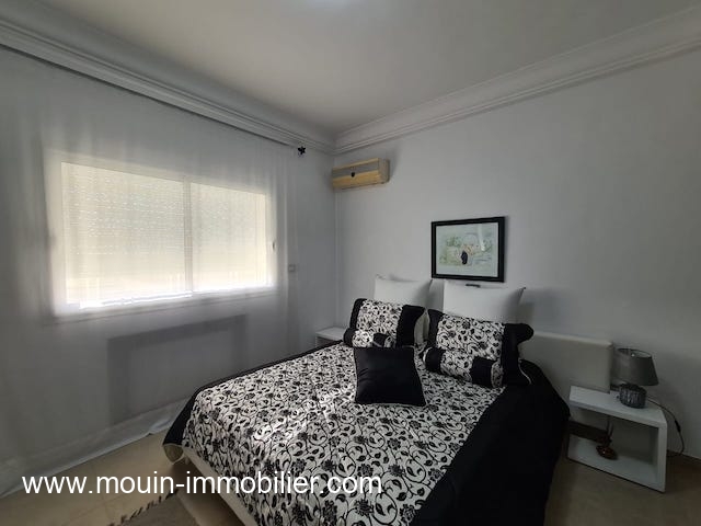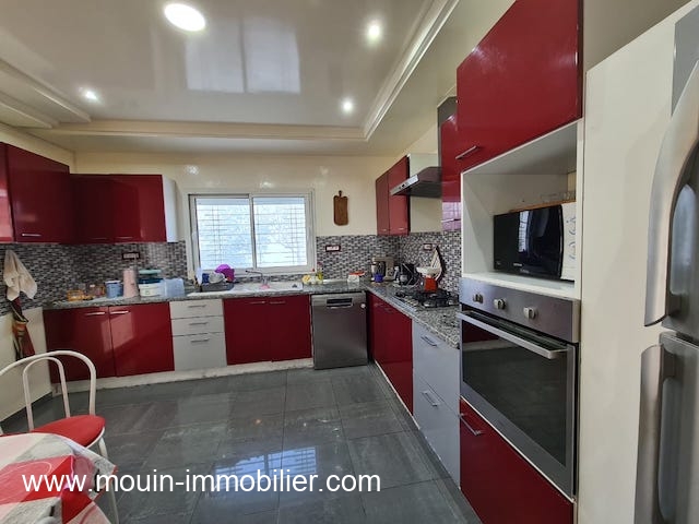A louer à l'année une belle villa semi meublée située dans un quartier calme et accessible à Hammamet. Erigée sur deux niveaux, cette demeure est composée au rez-de-chaussée d'un salon-salle à manger, une grande cuisine, une salle d'eau invités, une suite.