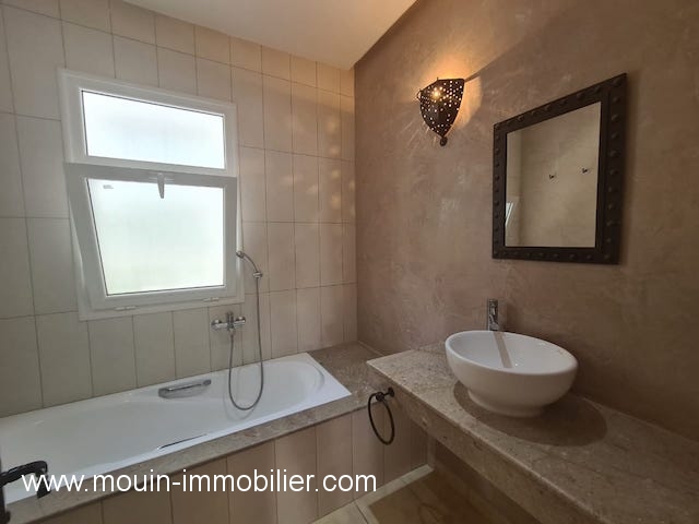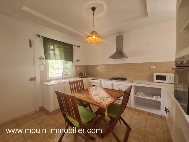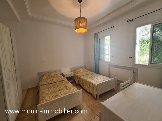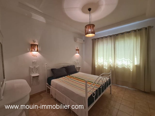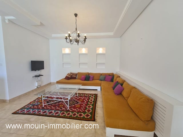 A louer à l’année un rez de chaussée de villa meublé avec gout situé dans la zone touristique Hammamet Nord à 05 minutes de la plage.