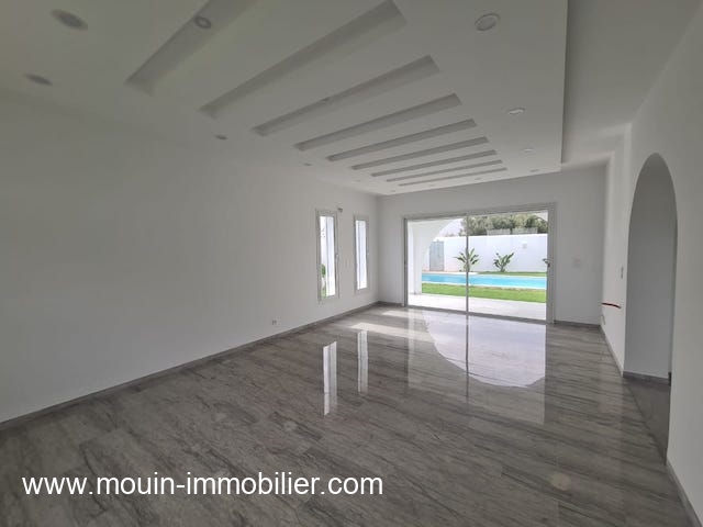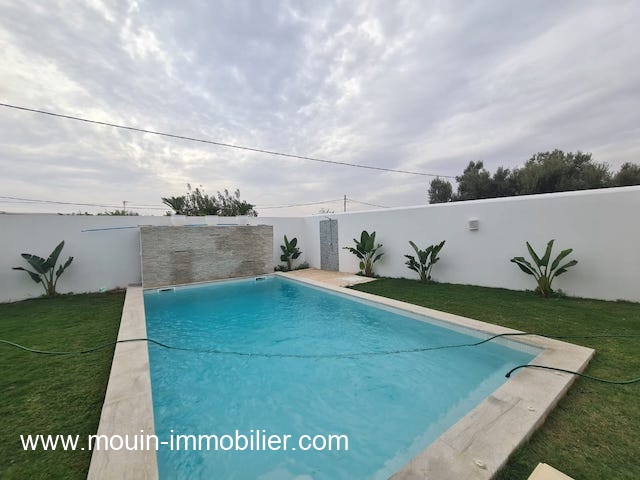 A louer à l'année une villa avec piscine d’une belle architecture arabesque contemporaine, situé à Hammamet El Faouara, à mi chemin entre la route ceinture et Birbouregba dans un quartier calme et verdoyant.