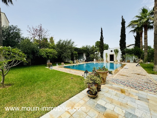 Bâtie sur un terrain qui s’étend sur 3000m2 gazonné, arboré et planté par des palmiers gérantes.