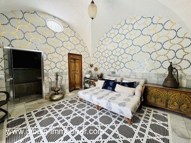 A louer à l’année une demeure de charme d’une architecture purement arabesque atypique avec ses arcades, coupoles et voutes croisées qui s’y mélangent formant des agréables volumes et grandes surfaces.