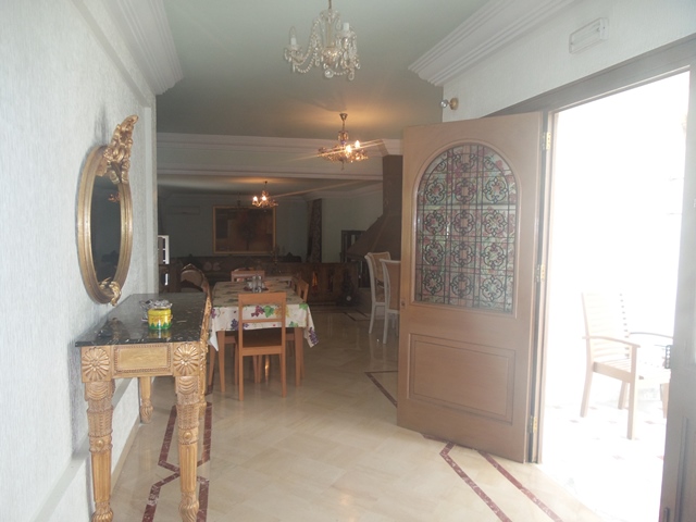 Au rez-de-chaussée, vous ouvrez directement sur un hall menant à un salon assez grand et bien aéré et ensoleillé avec une grande terrasse, ouvert sur un séjour et salle à manger, la cuisine du réez de chaussée est faite selon les normes de la modernité tout en gardant l’esprit de la ville, elle est très pratique par sa porte qui s’ouvre une buanderie, une suite parentale avec sa salle de bain privative pour préserver votre intimité et 2 chambres à coucher. Dans un souci du détail tout en cherchant la praticité, une sale d’eau et un hammam (bain maure) avec ses deux pièces chaude et froide s’implantent sous l’escalier qui amène au sous-sol. Le premier étage vous permet peut d’offrir à vos invité une intimité et une indépendance du reste de la maison par sa suite parentale qui vous offre une intimité absolue avec sa salle de bain privative, Deux autres chambres s’offrent à vous avec une salle d’eau commune, un salon avec une grande |