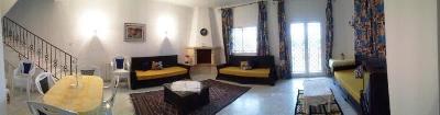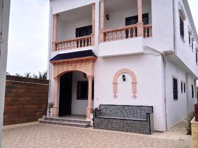 A louer à l'année une villa située à Hammamet Nord érigée sur deux niveaux, cette villa est composée de: Au rez de chaussée: , un salon, une salle à manger ,une cuisine, une grande terrasse et un jardin. Au 1er étage: quatre chambres à coucher avec leurs balcons, deux salles d'eau. Au 2eme étage: une buanderie et une terrasse donnant une vue sur mer. La villa est équipée d'un chauffage central et un climatiseur ainsi qu'un abri de voiture