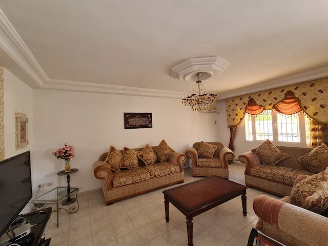 La villa est équipée de chauffage central, deux climatiseurs et elle dispose d’une véranda et d’un parking.