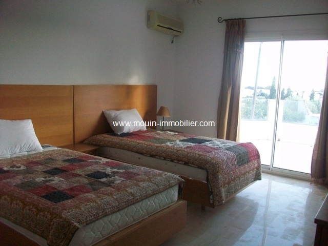 A louer à l'année une charmante villa érigée sur deux niveaux, située dans la direction de Yasmine Hammamet. Elle est composée de trois salons dont deux qui s'ouvrent sur le jardin, salle à manger, une suite parentale, quatre chambres à coucher, cuisine spacieuse bien équipée, trois salle de bain dont deux jacuzzi et trois salles d'eau. Cette villa dispose d'une grande piscine avec Hydro massage, garage, coupole extérieur à l'entrée de la villa, grand jardin gazonné et arboré dont on trouve deux paillotes et barbecue. Elle dispose aussi de deux studios bien équipés. La villa est équipée de chauffage central et climatiseurs dans toutes les pièces.