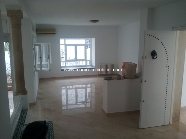 A louer à l’année une villa indépendante érigée sur deux niveau et située à el Menzah 7 dans un quartier calme et résidentiel. Elle offre au rez de chaussée un spacieux salon, une salle à manger, un séjour, une grande cuisine, une chambre à coucher et une salle d’eau. A l’étage on trouve une suite parentale, deux chambres à coucher et une salle de bain commune. La propriété est équipée de chauffage central et de climatisation et elle dispose d’un beau jardin et d’un garage.