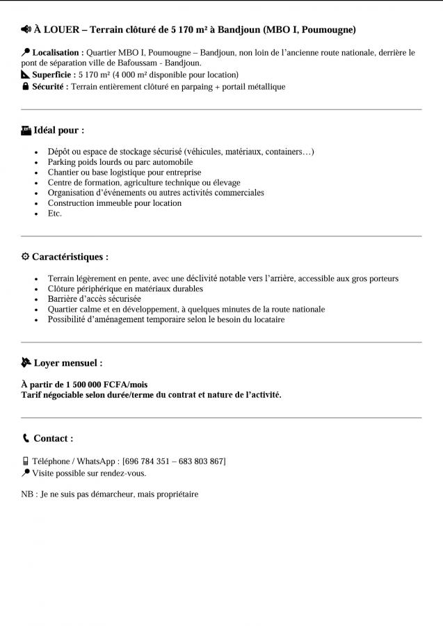 Localisation : Quartier MBO I, Poumougne – Bandjoun, non loin de l’ancienne route nationale, derrière le pont de séparation ville de Bafoussam - Bandjoun.