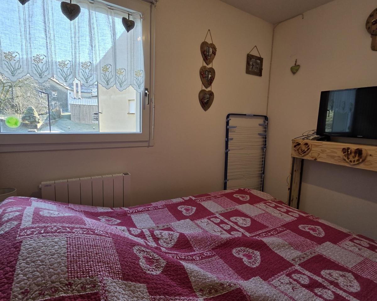 L’appartement comprend également une belle chambre, une salle de bains et des WC séparés. Au rez-de-chaussée, vous disposez d’un casier à skis et à vélos.