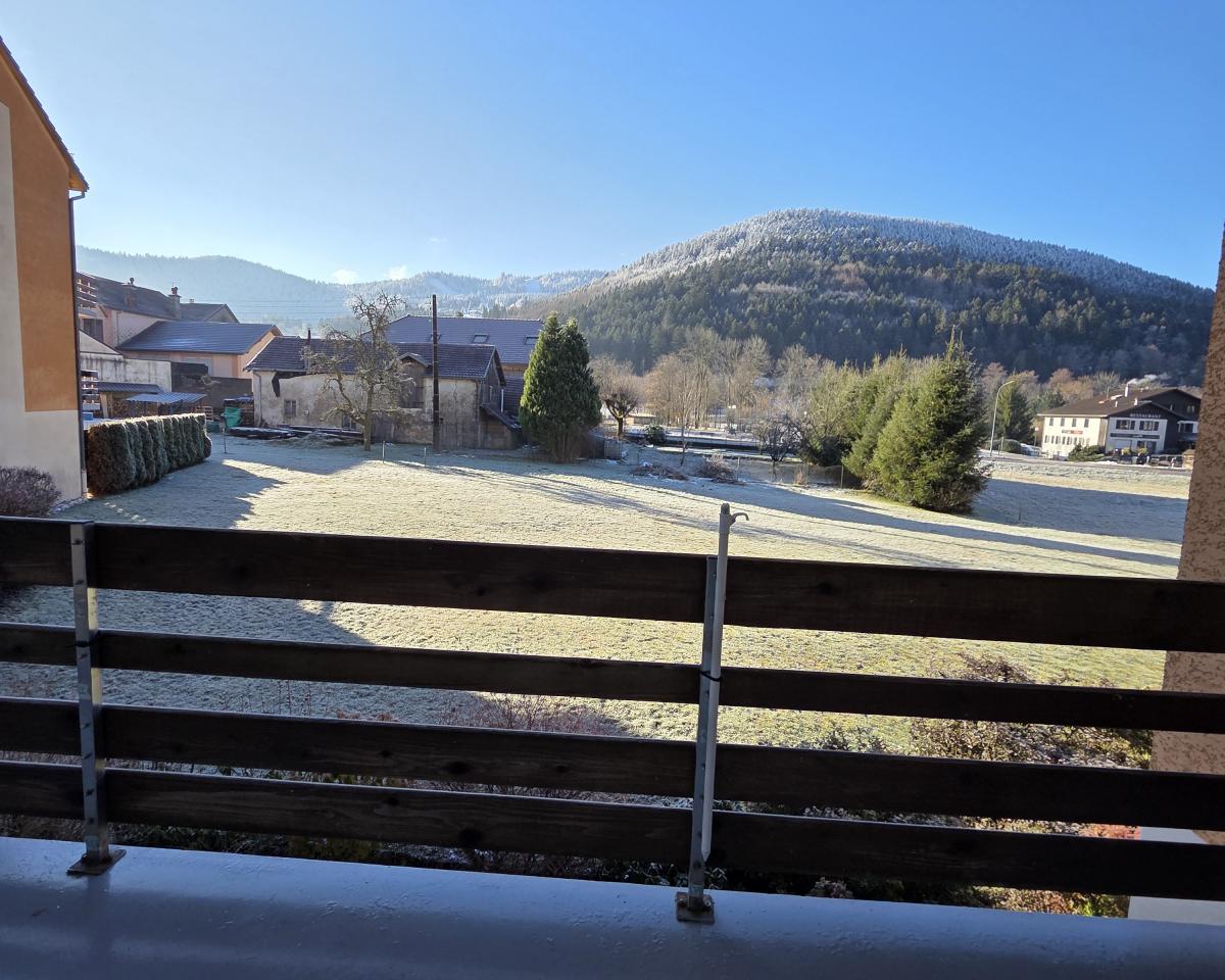 Son balcon avec vue imprenable sur les pistes de ski offre un espace parfait pour profiter du calme et du paysage vosgien.