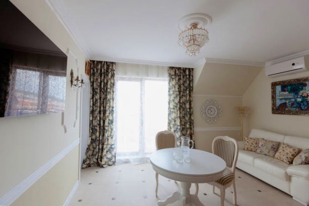Lumineux dès l'entrée, il dessert une grande cuisine indépendante entièrement aménagée , puis un grand double séjour salle à manger donnant sur un balcon où l'on peut déjeuner ou diner au calme sans aucun vis à vis, avec vue sur la mer, la verdure de la résidence et les collines de Balkan. Un endroit très calme