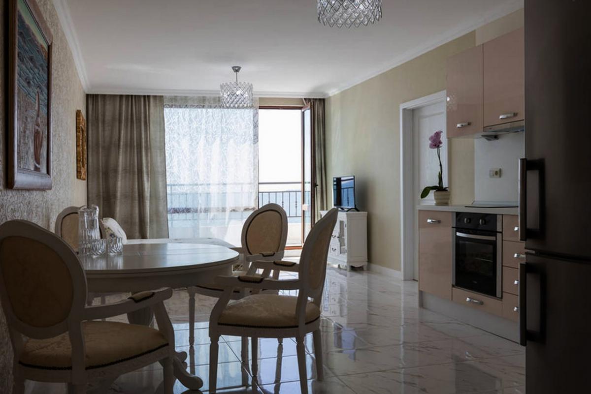 Ce superbe appartement au coeur du bay Nessebarsky est sur la plage, à 150 mètres du port et tous les commerces au pied de l'immeuble en font un produit rare. Vous pourrez tout faire à pied.