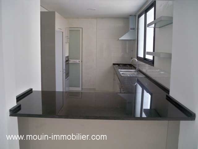 A vendre un bel appartement situé au 1er étage d'une résidence gardée à Ain Zaghouan. Il se compose de deux salons, une cuisine, trois chambres à coucher dont une suite, une salle de bain et une salle d'eau.