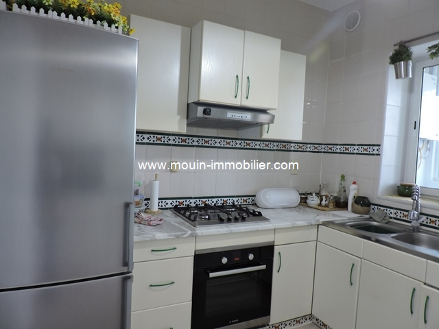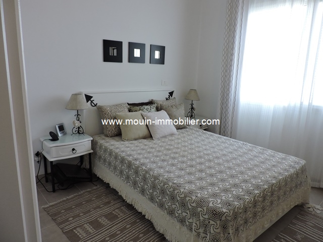 A vendre un coquet appartement richement meublé situé dans une résidence gardée et sécurisée à Hammamet Sud-Jinan. Il se compose d'un hall d'entrée, un salon-salle à manger donnant sur une terrasse couverte, deux chambres à coucher, une douche à l'italienne, une cuisine équipée avec un petit balcon.