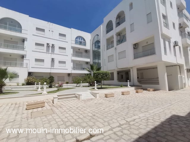A vendre un spacieux et lumineux appartement au 1er étage d’une résidence à 4 blocs de type R+3 située à Hammamet Sud, Avenue Moncef Bey à 500m environ de la plage.