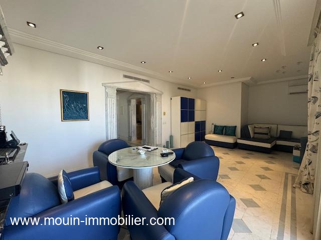 Il offre un spacieux et lumineux salon – salle à manger donnant sur une belle terrasse, protégée et décorée par du marbre sculpturé ayant une belle vue sur la mer, le canal et les différentes allées de la résidence.