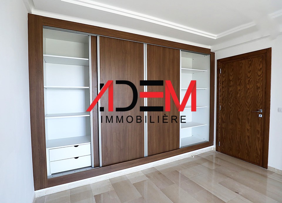 Agence immobilière Adem vous propose: A vendre en Tunisie à Sousse 'kantaoui' un joli appartement situé au deuxième étage dans un immeuble de luxe , et qui bénéficie par ailleurs d'une conception harmonieuse avec un agencement optimisé des volumes pour profiter de chaque espace. L'appartement vous assure un confort durable grâce à la qualités des matériaux de construction.Il est d'une superficie de 204 m² L'appartement est composé d'une salon bien ensoleillé qui s'ouvre sur un balcon +une cuisine bien équipée et arrangée qui s'ouvre sur une buanderie +une suite parentale qui s'ouvre sur une terrasse avec une agréable vue + deux chambres à coucher avec dressing et qui partagent un salle de bain. L'améliorations de la qualité de vie repose notamment sur une isolation phonique et thermique efficace dans le respect des normes actuelles. La sécurité est renforcée par la surveillance des accès aux résidences. -isolation phonique et thermique -porte intérieur et extérieur en bois noble -volets lants électriques -menuiserie aluminium -revêtements en marbre blanc salon et chambres en marbre chevronné -cuisine agencée et équipée -