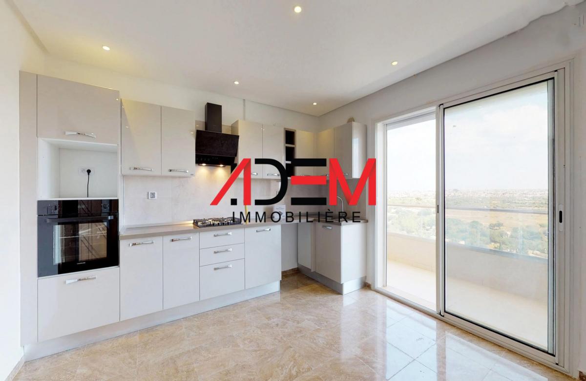 L'appartement vous assure un confort durable grâce à la qualités des matériaux de construction.Il est d'une superficie de 136 m² L'appartement est composé d'une salon bien ensoleillé qui s'ouvre sur un balcon +une cuisine bien équipée et arrangée qui s'ouvre sur une buanderie + deux chambres à coucher avec dressing dans l'une s'ouvre sur une terrasse avec une agréable vue + un salle de bain.