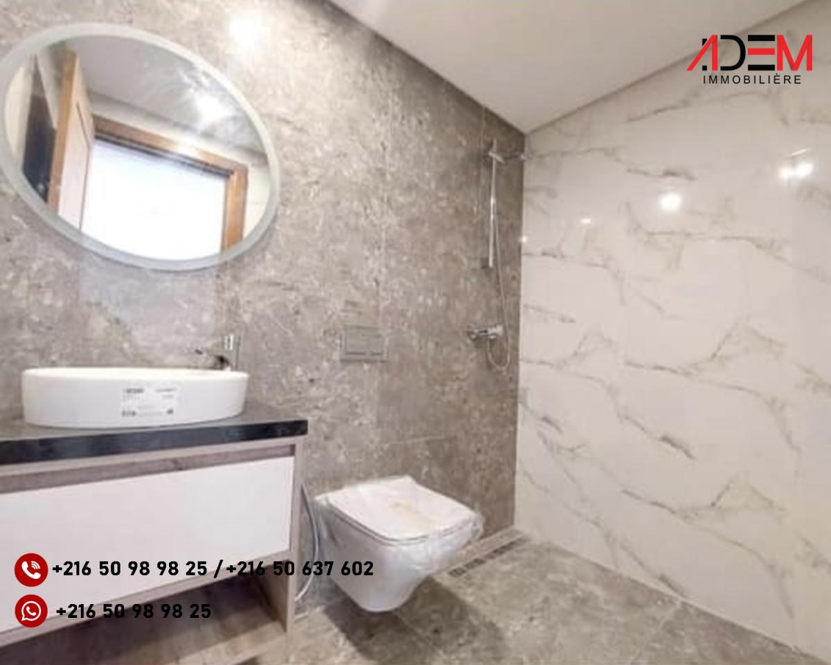 A vendre en Tunisie à Sousse' SAHLOUL4' un appartement jamais habité de haut standing très bien situé dans un immeuble avec ascenseur, bien sécurisé et prés de tous commodités .