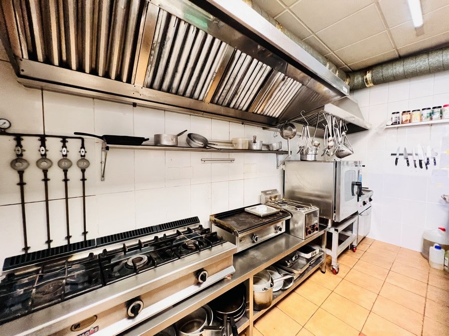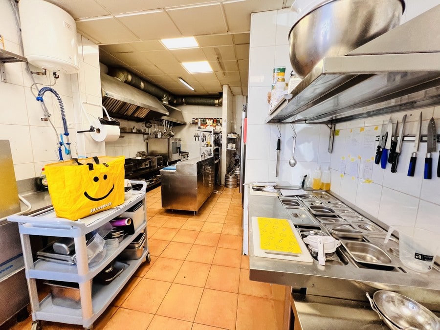 Cuisine équipée du matériel professionnel nécessaire pour la continuité de l'activité de restauration.