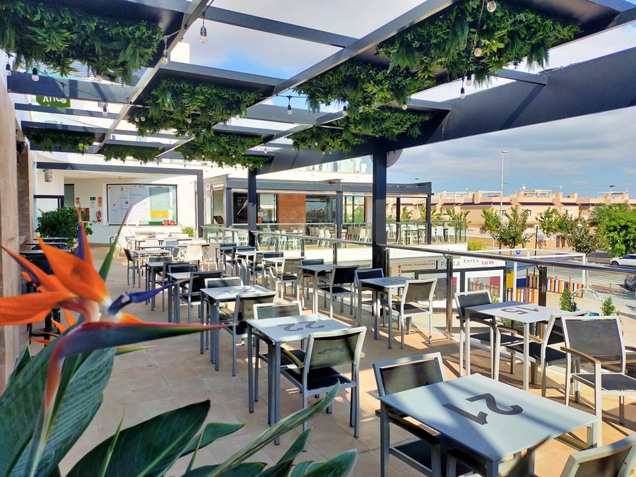 Sports-Bar et tapas au sud de la Costa Blanca dans un centre commercial dédié aux commerces de la restauration et autres : supermarché, un salon de coiffure, des agences immobilières et juridiques, etc. Au 1º étage d'un édifice d'un étage plus toit terrasse, orientée en direction de la route principale, de l'écran géant du centre commercial et de l'emplacement prévu pour les animations organisées par le centre commercial. Promenade maritime, l'église et la plage principale a 5 minutes à pied. Complètement équipé, ce qui permet la continuité de l´activité sans besoin d'arrêt. Salle principale reformée, il y a moins d'un an, climatisée et bien décore. Cuisine permetant la préparation de petits-déjeuners et petite restauration. Terrasse couverte, pouvant accueillir plus de 50 personnes. Quartier résidentiel et touristique en pleine expansion avec la création d'un centre de santé, d'un lycée et d´une école privée. Torre-horadada et son village de Pilar de la Horadada vivent ces dernières années une urbanisation importante avec des ventes immobilières, record a des citoyens d'Europe du Nord et notamment beaucoup d'Anglais, de Scandinave, de Français et de Belges.
