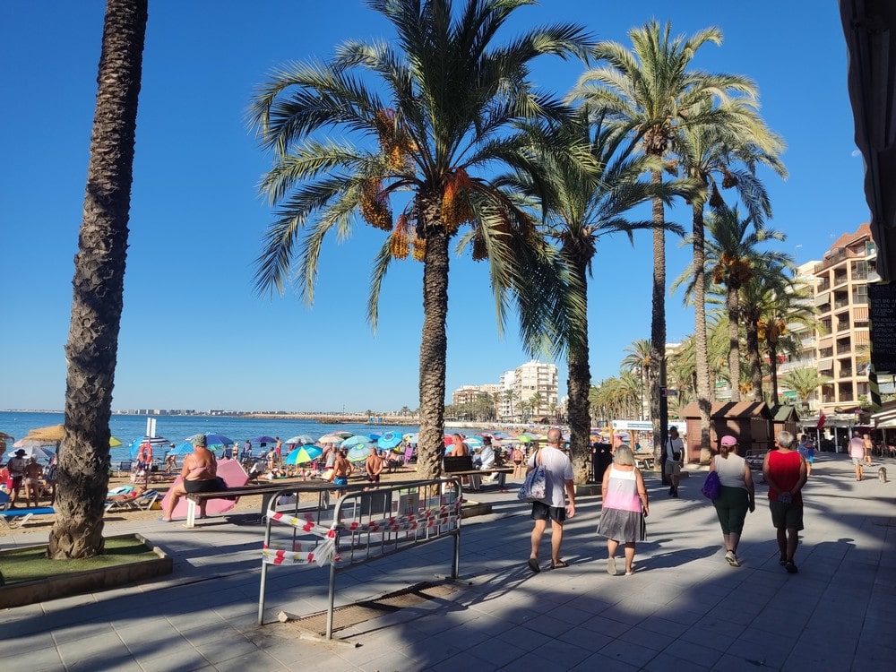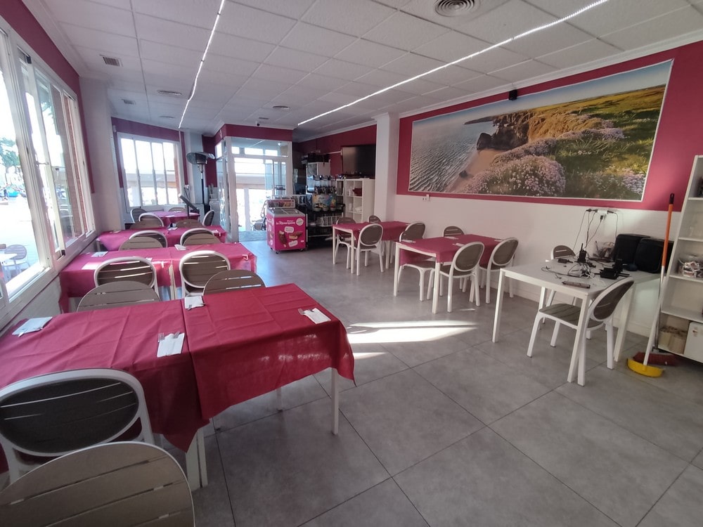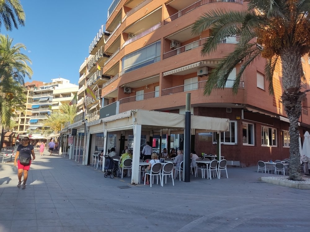 Grand bar restaurant complètement équipé situé directement face à une plage de sable dans un quartier résidentiel de la ville de Torrevieja sur la Costa Blanca sud.