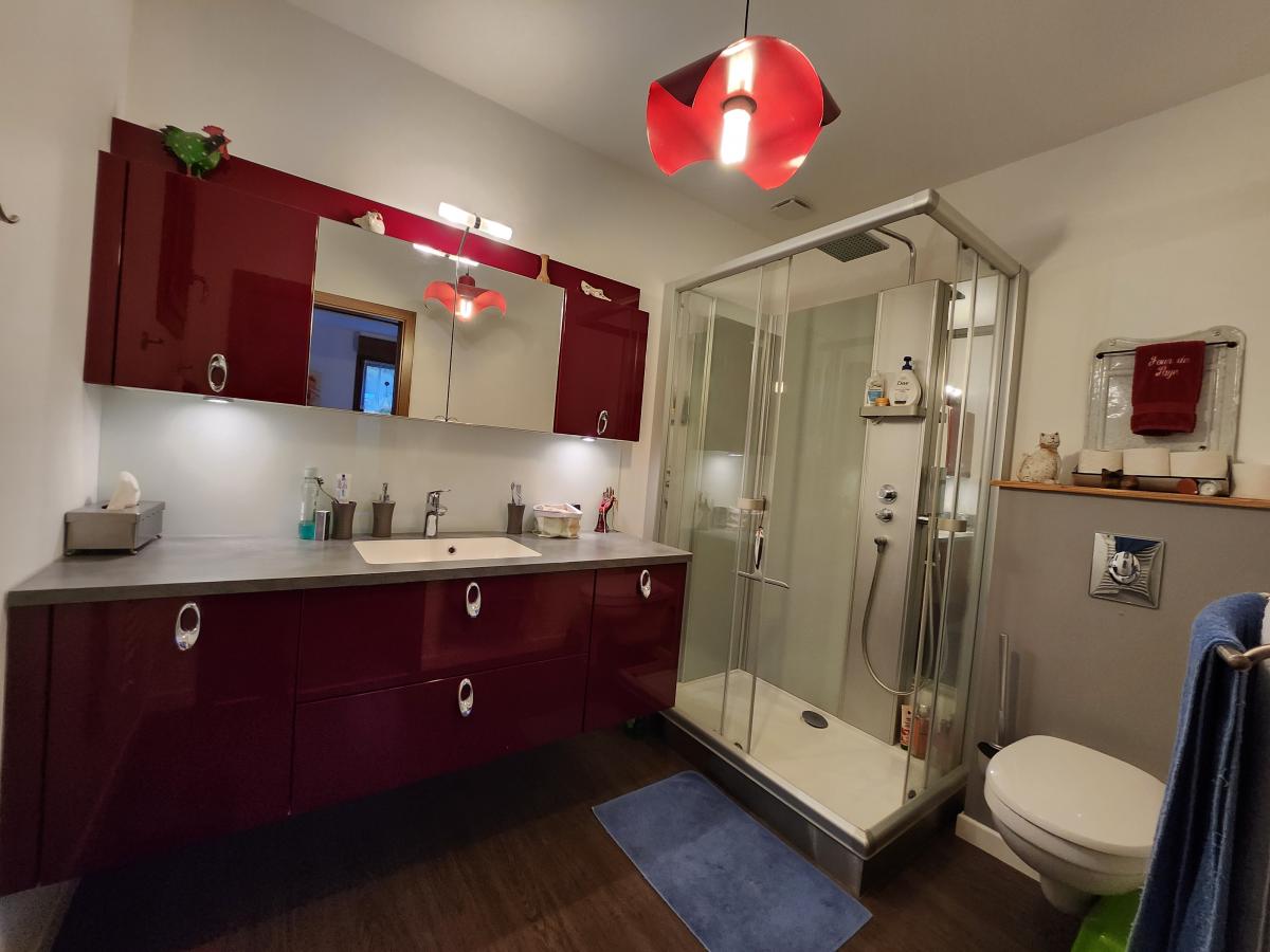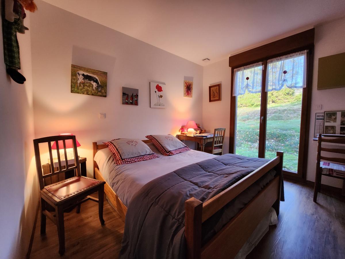 * Au rez – de – chaussée : (accès par l’intérieur ou l’extérieur), accès par la terrasse panoramique couverte en bois, porte d’accès à la maison, entrée dégagement cuisine ouverte sur salle à manger, poêle à bois, porte d’accès au balcon, espace salon et bureau, 3 belles chambres avec chacune une sortie donnant sur la prairie et la lisière de forêt, dont une suite parentale av |