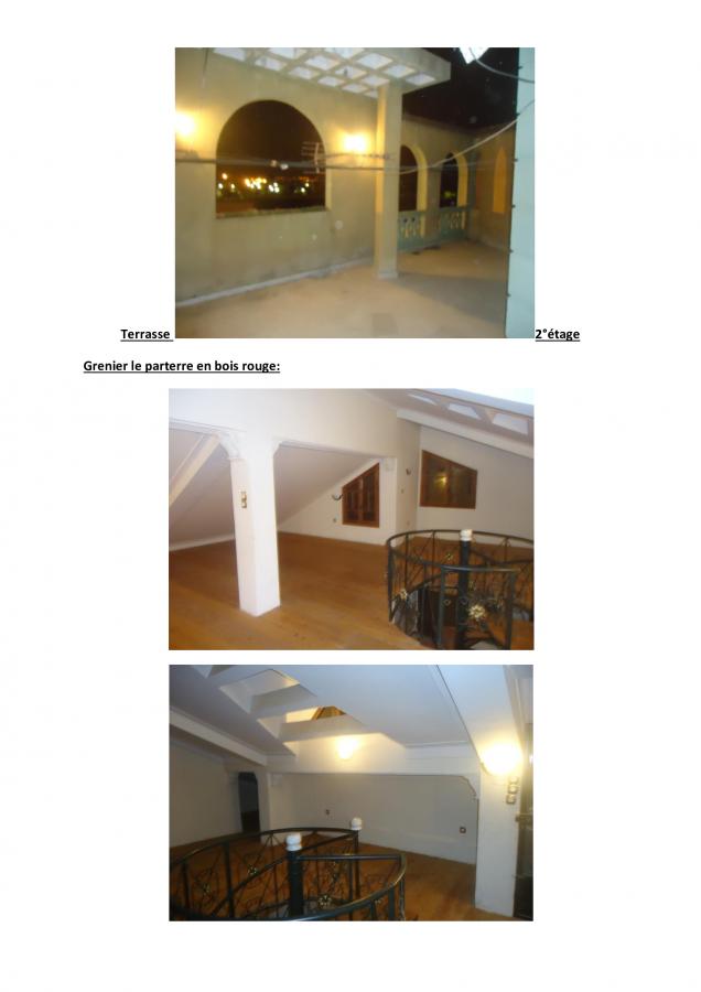 - Grenier une chambre grande inclinée en dalle par terre en bois rouge une terrasse face rue secondaire.