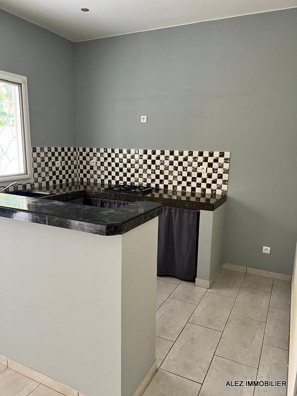 Elle est composée d’un séjour avec cuisine américaine placardée et plaque gaz 4 feux, 3 chambres (de 9,50 m² environ chacune) , 1 salle d’eau complète, 1 terrasse couverte, 1 abri de voiture couvert. Maison déjà connectée aux réseaux électrique et eau de la ville. En façade, un joli jardin arboré et paysagé complète le lieu.