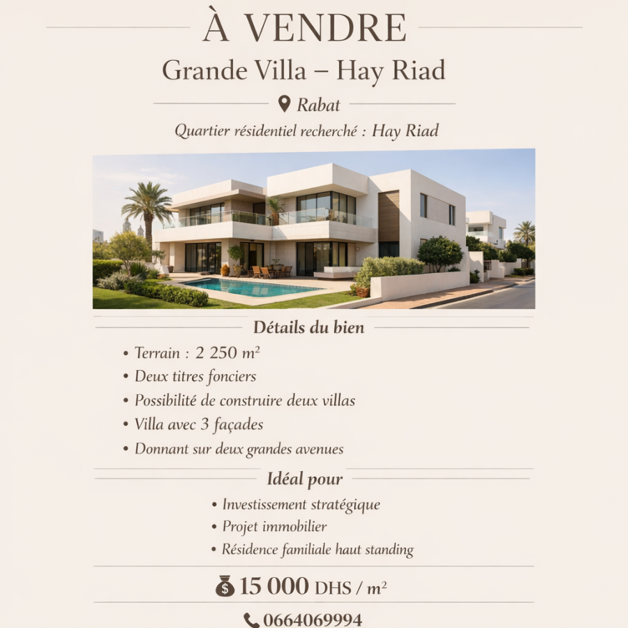 📍 Localisation : Rabat – Quartier Hay Riad