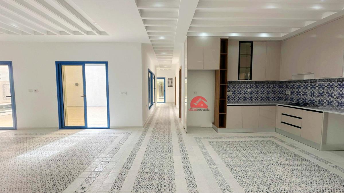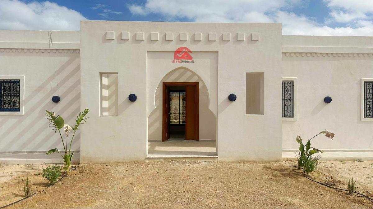 Construite sur un terrain de 2141 m² avec titre bleu. Une belle construction de 240 m² avec architecture et volumes du style djerbien.