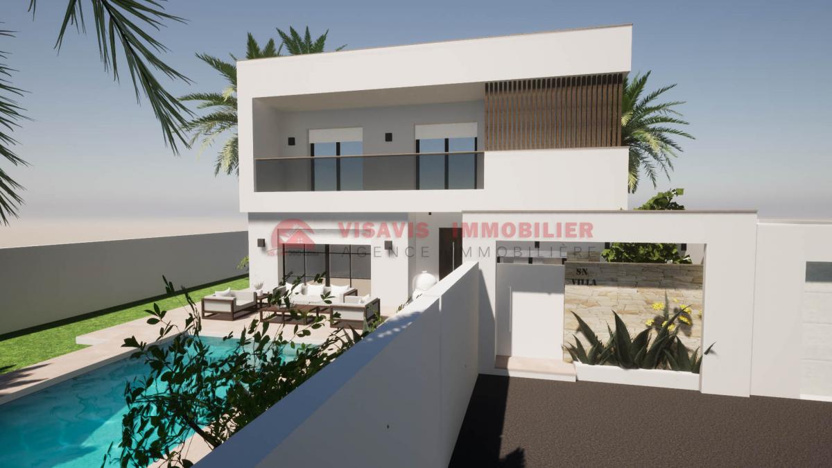 Construction en cours – Livrée finie – Villa moderne avec titre bleu – Implantée dans un lotissement calme et proche du centre-ville, cette villa offre un cadre de vie confortable et élégant.