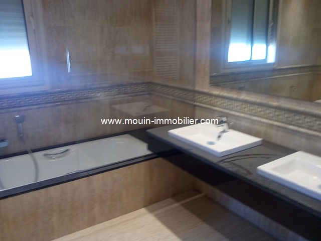 A vendre une belle demeure d’haut standing située à Gammart dans un quartier calme et résidentiel. Elle offre au rez de chaussée un spacieux salon, une salle à manger, une belle cuisine aménagée, une chambre à coucher et une salle d’eau. A l’étage on trouve trois suites. La villa compte également un sous-sol aménagé d’un local technique, une chambre de service, une salle d’eau et un grand parking. La propriété est équipée de chauffage central et de climatisation et elle dispose d’une piscine et d’un beau jardin gazonné et bien entretenu.