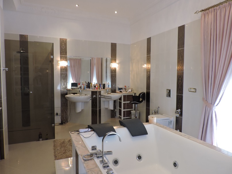 La propriété est équipée de chauffage (au sol), climatisation centralisée et elle dispose à l’extérieur d’une loge gardien et une buanderie.