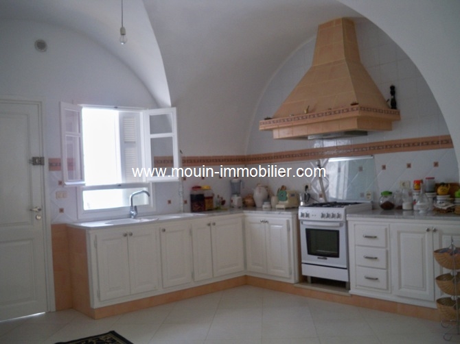 A vendre Villa de style arabe située à Hammamet, construite sur deux niveaux comprenant : au rez de chaussée 2 chambres à coucher, dressing, une salle de bain et une salle d’eau.