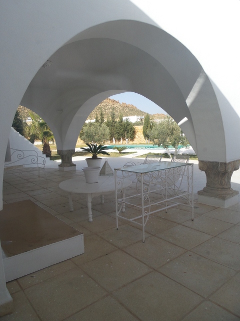C'est une villa avec ses voûtes, arcades et coupoles est située dans un environnement calme et apaisant tout droit sorti d'un tableau de Maître.