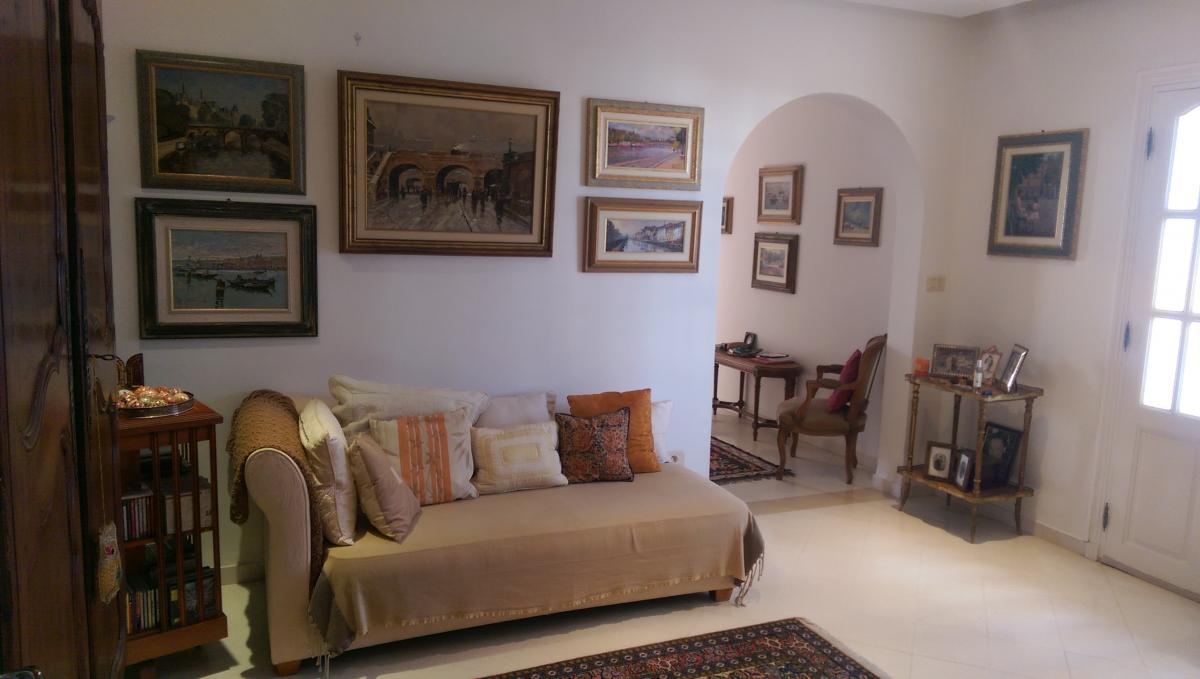 A chez l'agence TPS Immobiliere Hammamet, une somptueuse demeure érigée sur trois niveaux, bâtie au style arabo-contemporain avec des voûtes croisées et des arcades. Elle est située à Hammamet, dans un quartier verdoyant, calme et serein à 1 km environ de la plage. La villa offre un spacieux salon contenant un agréable coin de détente face à la cheminé et une salle à manger, une chambre à coucher, une salle d’eau et une cuisine bien aménagée. Au premier étage, on trouve trois suites avec des placards et salles de bains et au deuxième une grande suite aménagée en une bibliothèque avec un coin bar et une salle d’eau. Au sous sol, on trouve une grande pièce, une spacieuse cuisine et un débarras. La villa est équipée de chauffage central et de climatisation et elle dispose d’une superbe piscine entourée d’un jardin gazonné avec arrosage automatique, d'une loge gardien et d’un garage pour deux voitures.