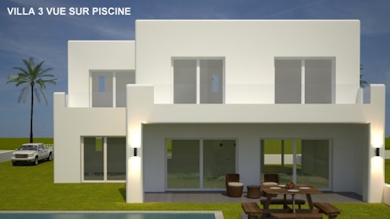 A l’extérieur la villa dispose d’un parking, une grande piscine et un jardin gazonné.