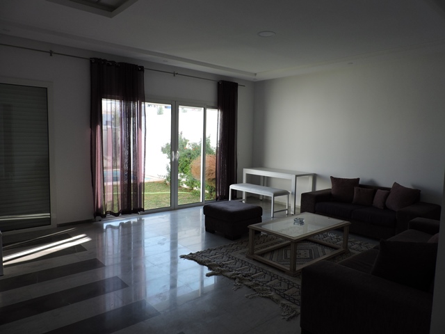 A vendre une villa de haut standing érigée sur deux niveaux située à Hammamet Sud proche plage et commerces. Elle se compose d'un hall d'entrée, un salon-salle à manger donnant sur une belle terrasse, une cuisine équipée, une chambre et une salle d'eau au rez-de-chaussée.