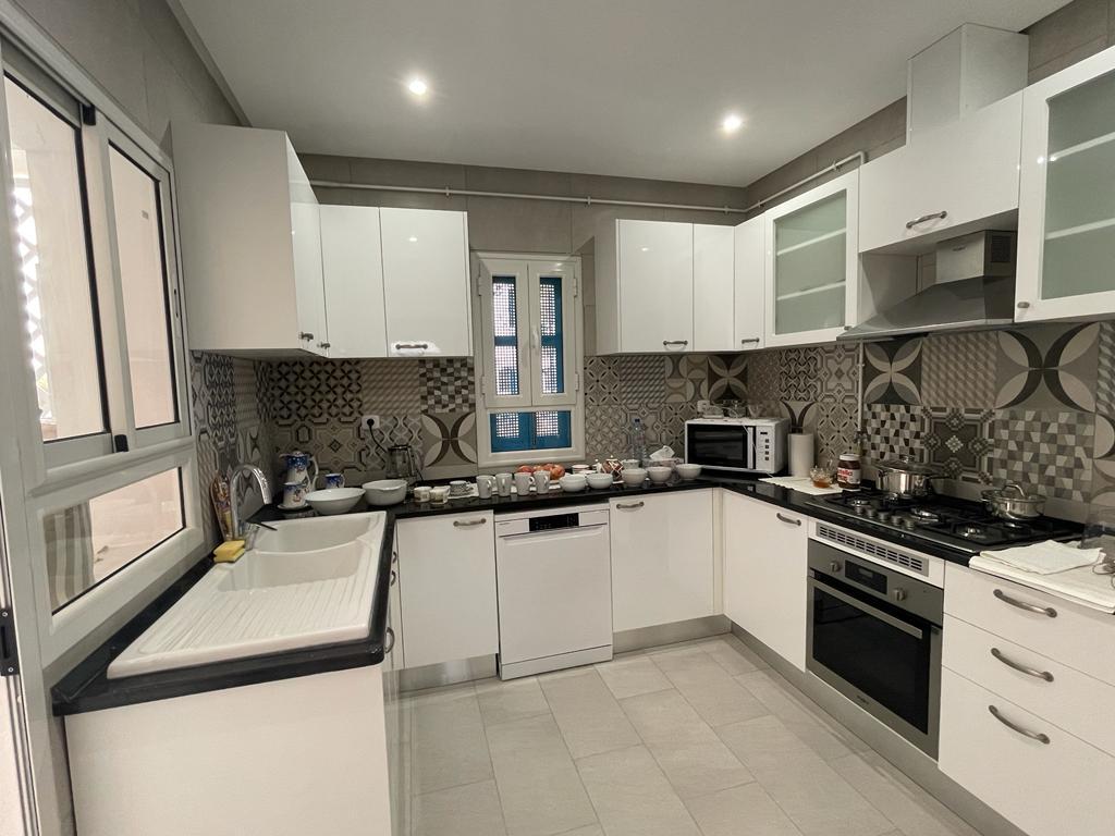 EXCLUSIVITÉ - YASMINE HAMMAMET, dans une résidence de standing construite en 2019, magnifique DUPLEX 5 pièces de 215.35 m2 offrant une belle vue dégagée (sur jardin privatif et piscine). Cet duplex offre un hall d'entrée, un spacieux séjour , une cuisine fermée entièrement équipée bénéficiant d'une exposition EST. Vous trouverez un espace nuit complètement indépendant comprenant 4 belles chambres avec placards aménagés, ainsi qu'une jolie salle de bains,une salle d'eau au rez de chaussée.2 places de parking, 2 celliers complètent ce bien. Belles prestations : climatisation , chauffage central, isolation phonique de haut niveau.