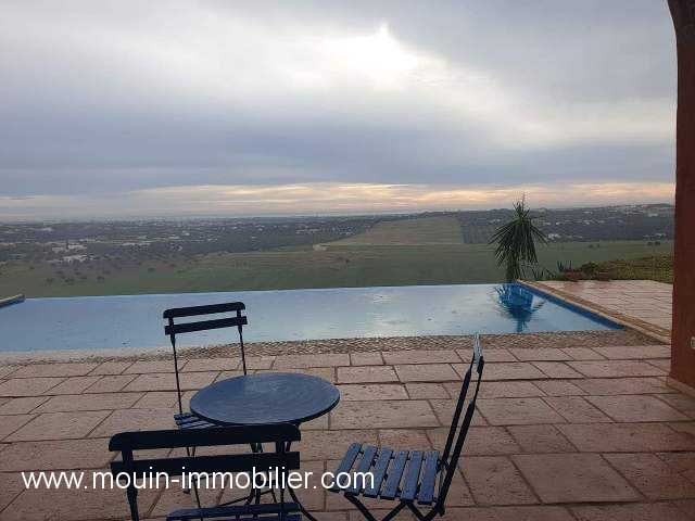 A vendre une demeure de charme d’une belle architecture arabesque, située sur les hauteurs d’El Monchar (à environ 7Km de Yasmine Hammamet vers le Sud), un endroit avec panorama exceptionnel, un cadre calme et reposant avec une vue imprenable sur la piscine, les vergers et la mer