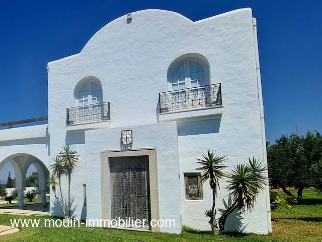 A vendre une belle demeure de charme arabesque atypique située sur les hauteurs de Hammamet – Zone Craxi un quartier bien accessible par rapport à la route ceinture, calme et serein.