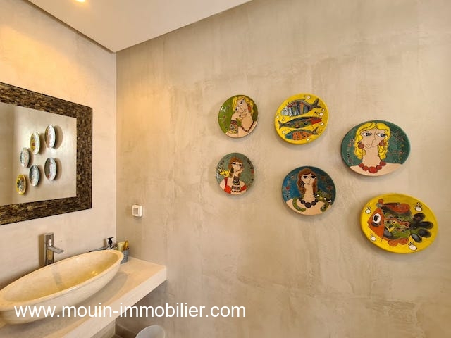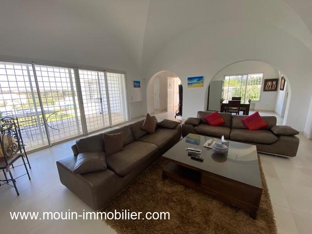 La villa est équipée de climatisation et elle bénéficie à l’extérieur d’une agréable vue dégagée sur la verdure des vergers mystérieux de Hammamet, elle compte également une superbe piscine et diverses terrasses.
