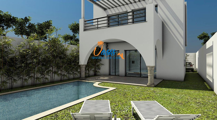 À vendre villa neuve S+3 avec piscine à Hammamet ,Superficie terrain : 210 m² Superficie couverte : 130 m² Située dans un quartier calme, proche de la zone Théâtre et des hôtels Les Orangers Garden