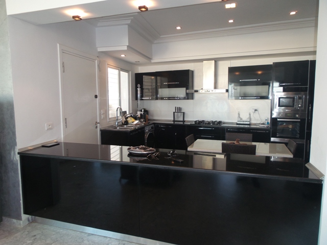 la villa se compose d'un grand salon moderne, une kitchenette, un salon marocain, une suite parentale avec une salle d'eau, dressing et une terrasse, deux chambres à coucher chacune avec terrasse, une salle de bain, un garage et un jardin.