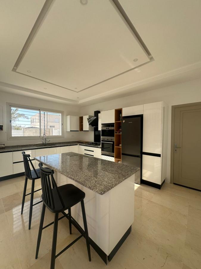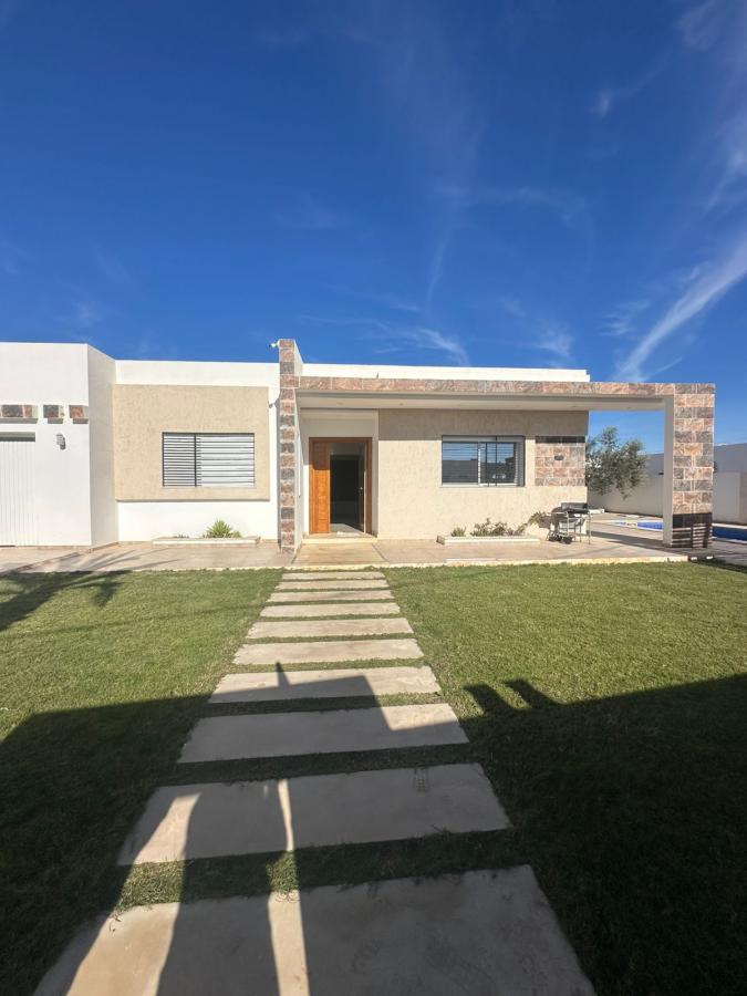 𝗔 𝘃𝗲𝗻𝗱𝗿𝗲 Une charmante villa avec piscine située à Beni Bendou Houmt Souk 𝗖𝗼𝗺𝗽𝗼𝘀𝗶𝘁𝗶𝗼𝗻 : ▫Salon ▫Cuisine ▫Suite parentale ▫2 chambres ▫Salle de bain ▫Garage 𝐂𝐚𝐫𝐚𝐜𝐭𝐞́𝐫𝐢𝐬𝐭𝐢𝐪𝐮𝐞𝐬 : ▫ Zone urbaine ▫ Titre bleu ▫Surface terrain : 𝟔𝟎𝟎 𝗺² ▫Surface couverte : 𝟏𝟖𝟎 𝗺²