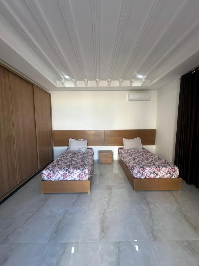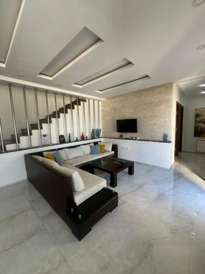 𝗖𝗼𝗺𝗽𝗼𝘀𝗶𝘁𝗶𝗼𝗻 : Au rez de chaussée ▫️Salon ▫️Cuisine ▫️Salle à manger ▫️2 chambres ▫️Salle de bain ▫️Gand dressing Niveau étage ▫️Suite parentale A l'extérieur ▫️ Piscine ▫️Citerne 18000 litre ▫️Garage 𝐂𝐚𝐫𝐚𝐜𝐭𝐞́𝐫𝐢𝐬𝐭𝐢𝐪𝐮𝐞𝐬 : ▫️ Zone urbaine ▫️ Titre bleu ▫️Surface terrain : 𝟓𝟐𝟑 𝗺² ▫️Surface couverte : 𝟏𝟕𝟓 𝗺²