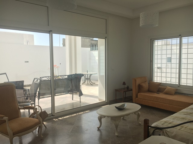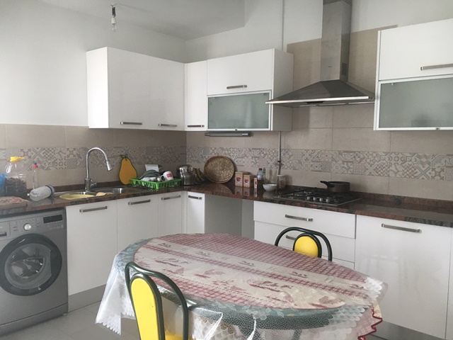 A vendre à Mrezka une villa neuve composée de trois appartements : au rez-de-chaussée on trouve un appartement de 120m2 composé d'un salon, une cuisine, deux chambres à coucher , une salle d'eau.