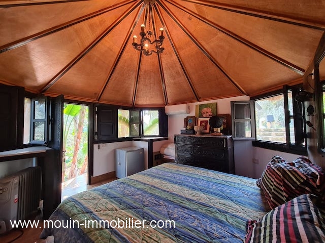 A l’extérieur, la villa dispose d’une belle suite en cabane communicant avec la villa à travers des allées bien conçus tout au long du terrain.