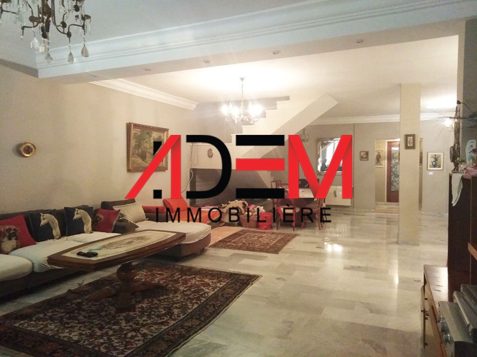 Notre propriété est érigée sur trois niveaux, l'entrée bénéficie d'un grand jardin qui offre un cadre de vie relaxant et confortable. L'entré donne sur un spacieux salon +3 chambres+salle de bain. On mentons par l'escalier on découvre le deuxième niveau avec son grand salon tapissé par revêtement sol en marbre blanc et qui peut abrite un salon et un salle à manger , une cuisine bien équipée et aménagée , un suite parentale , deux chambres à coucher qui partagent un salle de bain. *enfin le troisième niveau est composé d'un grand salon qui s'ouvre sur une très grande terrasse +un suite parentale avec une pièce pour dressing +salle de bain. *Equipements: chauffage centrale, climatiseurs , dressings , cuisine équipée.